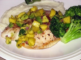 Place the Tilapia with the Mango Avocado Salsa on top