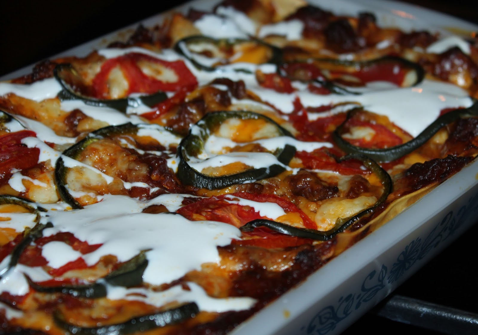 Spray a 9×9 casserole dish with cooking spray and spread some chili on the bottom. Place 3 noodles on top; add more sauce and the cheese’s. Repeat; creating 3 layers.