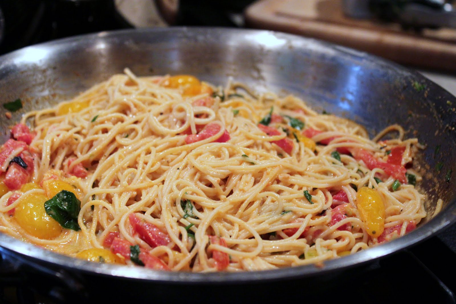 1/4 pound thin spaghetti noodles (enough to yield 2-3 cups cooked)