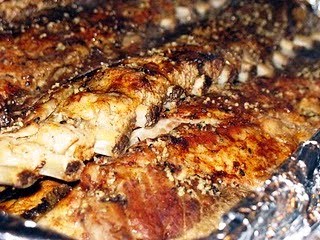 Mix above ingredients well and rub on both sides of the ribs and place in a heavy roasting pan (line with foil for an easy clean-up)
