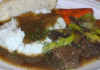 Pour some of the broth over the meat and potatoes or make gravy and ENJOY!
