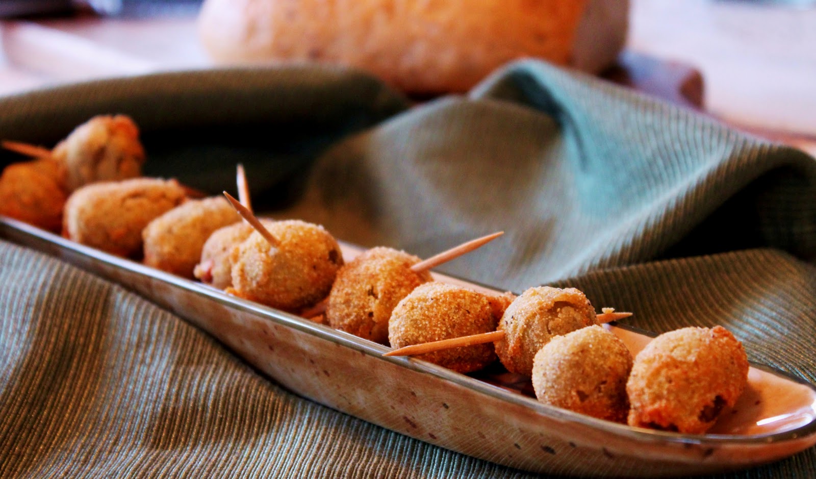 | Fried Green Olives Stuffed with Gorgonzola and Bacon By The Gourmet Farm Girl |