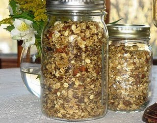 In a large bowl mix the oats, nuts, flax seed and raisins; set aside