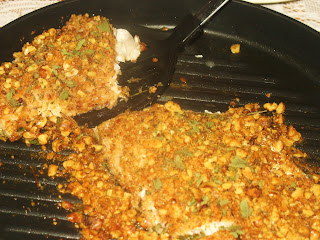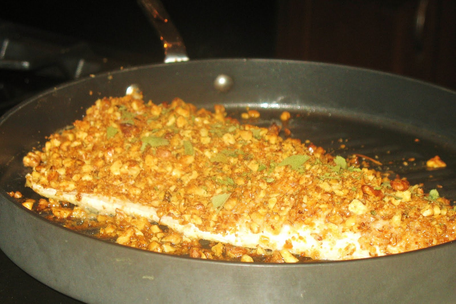 Rinse fillets in cold water; brush with extra virgin olive oil; lightly salt and pepper; press crumb mixture on top of each fillet.