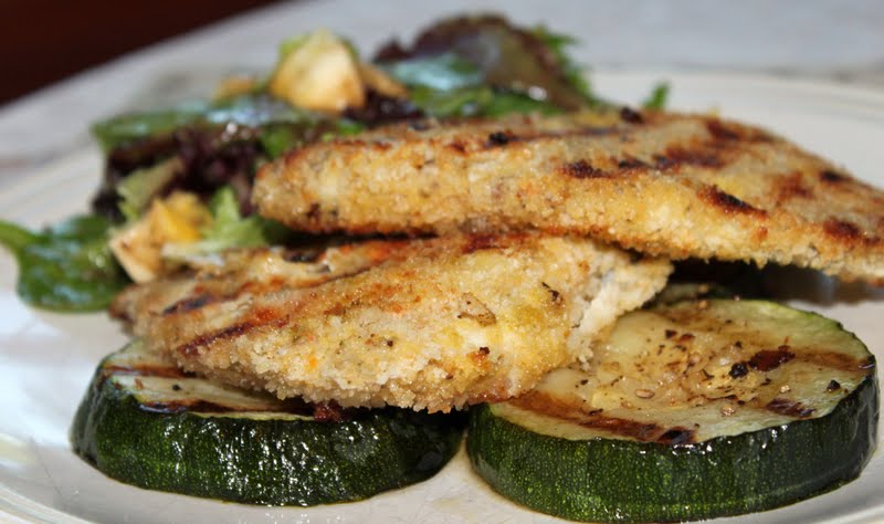 Slice zucchini and lightly brush with vegetable oil, salt and pepper; set aside