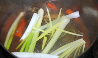 When meat starts to tender; add the carrots and leeks; turn heat up to medium; cover and let cook for an additional 30-40 minutes